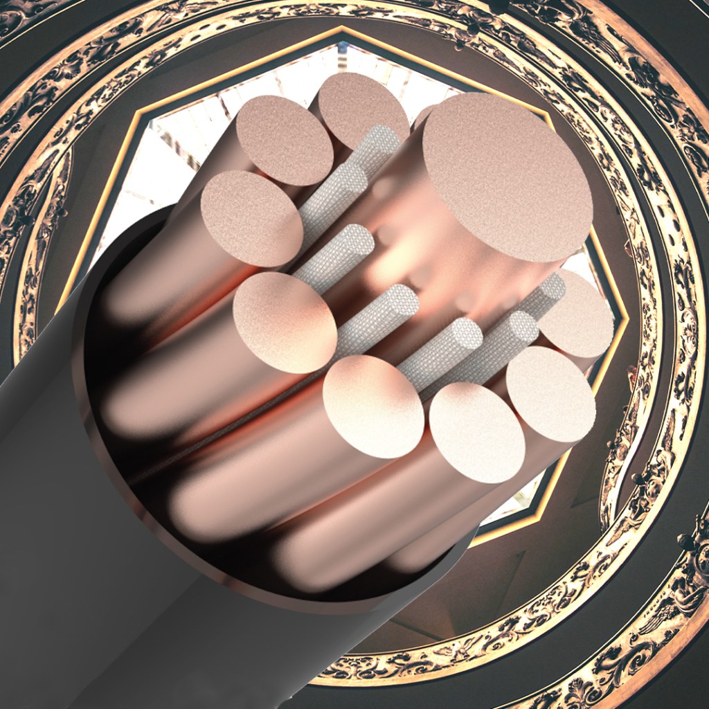 Eletech獨門秘技—幾何編織組合法。能有效保持線材纖幼同時利用每組線股的最大空間。通過不同大小的線材,填充於線皮之中,除了能令到內裏空間完全利用,傳遞最大限度的訊號之外,亦能按不同比例以作調音之用。
