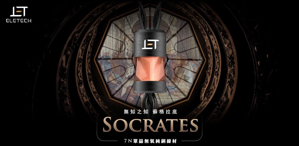 Eletech的線材開發團隊,設計蘇格拉底的時候,希望聲音能夠呈現出音樂中的細緻線條質感和濃厚的音樂表現氛圍。團隊測試市面上的單晶無氧銅線,發覺根本滿足不了團隊對蘇格拉底音色上的要求,尤其看重線材物料及純度的雅典學院系列,這一點絕對不可疏忽。 Eletech 的物料工程師,特別為蘇格拉底設計了獨特的24AWG 7N單晶無氧純銅線線材物料經過單晶精煉而成,具有單晶體、連續結晶及零晶界的特性,達到高導電性能、低失真及高速傳輸的優點。