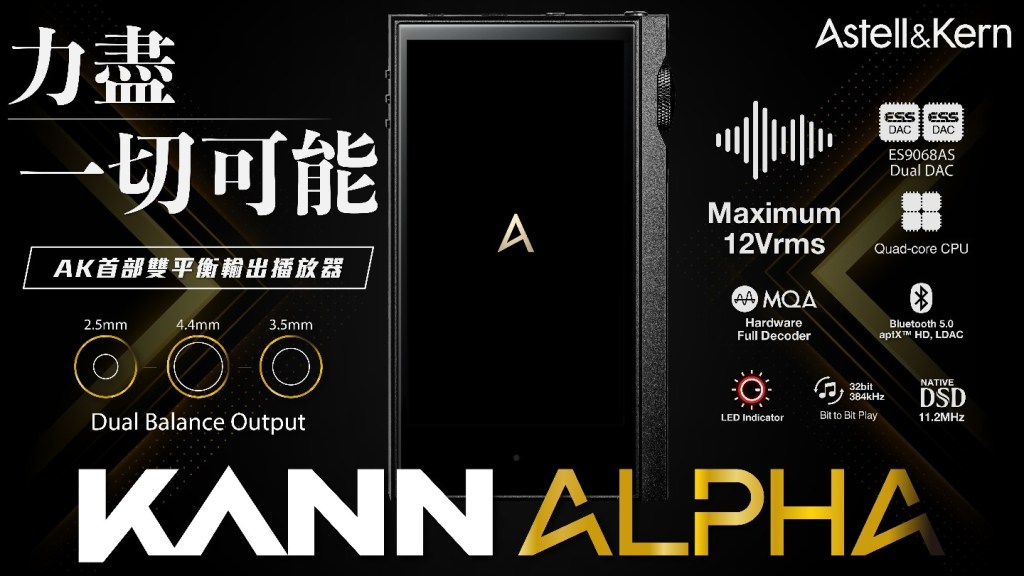 KANN ALPHA 不單是回應用家訴求及功能上的需要,更顯示Astell&Kern 於播放器設計及技術上的能耐,從外觀金工,到電路設計均盡顯 AK 於市場上之領導地位,並以最強姿態,繼續領先播放器市場。