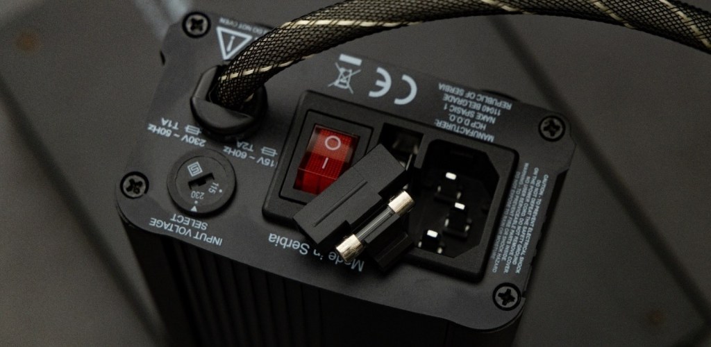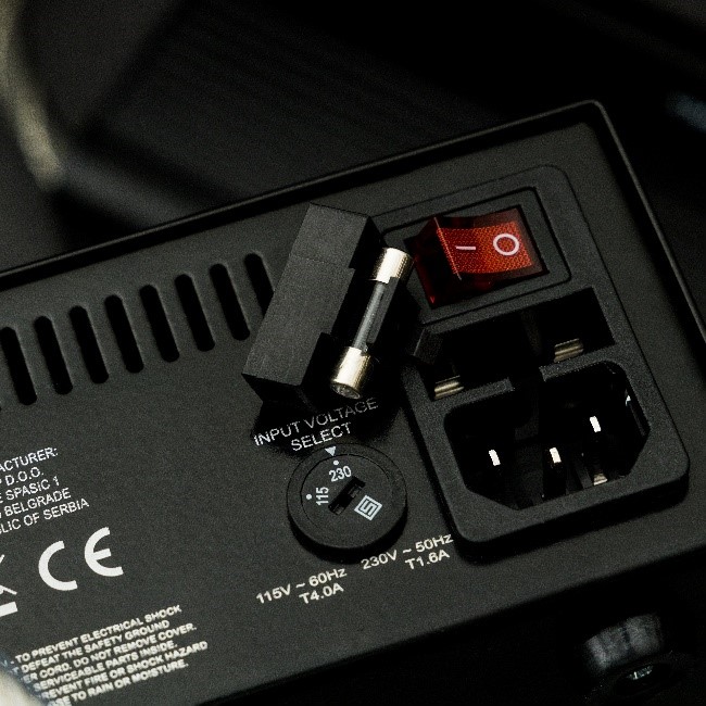 全獨立線性供電透過5針式插頭的供電線與Euterpe主機相連,特別之處在外置供電由主機控制,所以在插上電源後,供電顯示燈不會亮起,直至啟動Euterpe後,主機和供電顯示燈才會同時點亮。由於主機設有延時啟動功能,因此在啟動後機身顯示燈會閃動,經短時間熱身後才會正式進入工作狀態,這種設計有助減低電流瞬間衝擊,保護訊號電路的同時更有助延長真空管的壽命,而Euterpe亦猶如其他膽機一樣,暖機一段時間讓真空管工作穩定後,所得音響效果會更進一步。