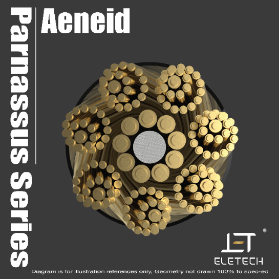 Aeneid 的設計靈感源自於譽為古羅馬最偉大的國民詩人—維吉爾(Virgil) 其中一部史詩傑作《艾尼亞斯紀》,內容緊接《伊利亞德》於特洛伊陷落後的發展,可算是《伊利亞德》衍生出來的續集。線材將象徵著古羅馬時期的「羅馬鬥獸場」作為設計的主軸,以橫切面把內部切開,增加多維的感官效果,以奢華的高級磨砂黑色配以金色塗層作為主調,豪邁直白,仿佛重現出古羅馬帝國的輝煌。