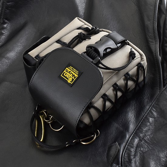 帆布是 VanNuys 的經典,面對年青用家, VanNuys 近年推出的新品亦勇於採用不同物料,其中最常用的就是 Cordura 纖維,同樣擁有耐磨、防污的特質,亦有一定的防水能力,比起帆布更堅挺,可能製作出更方正的袋型。 Custom Bag F2 就是一款以Cordura 纖維製作的肩背包,四四方方的袋形可以用盡所有空間,外型細小但已經足以放入 iPad mini 、無反相機、 DAP 、手機等日常用品,獨特內間隔可自由調節,分類收納更為方便,袋側特設金屬扣具可配搭原廠手機袋、 DAP 袋、水樽袋使用,靈活組合。斜角縫紉的 D 扣讓肩背包在側狽、背狽時都可以保持垂直,隨時隨心取物。