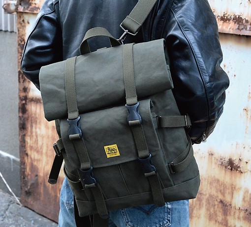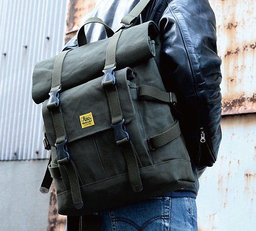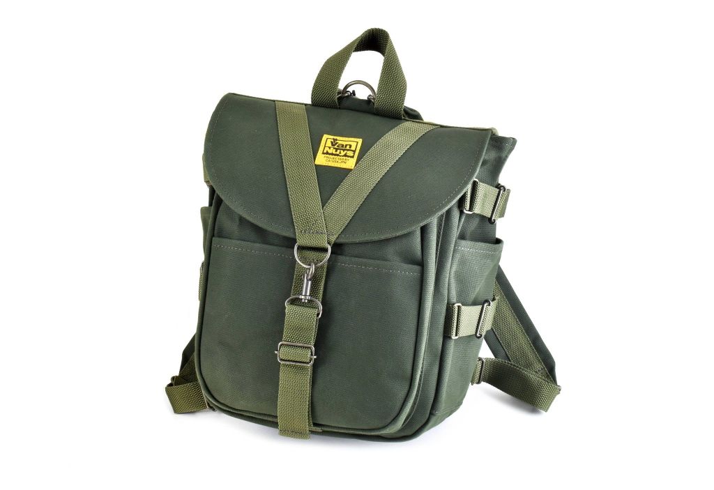 VanNuys 經典石蠟塗層 6 號帆布還用於不同系列,包括 Backpack Series Type A 帆布背包。帆布散發著復古、休閒的感覺,主間隔的卷頂式設計提供額外防水效果之外,更可收納一把縮骨遮,以備不時之需。主間隔足以放入 A4 文件、雜誌,前袋亦可放入手機、輕便相機,取物非常方便。
